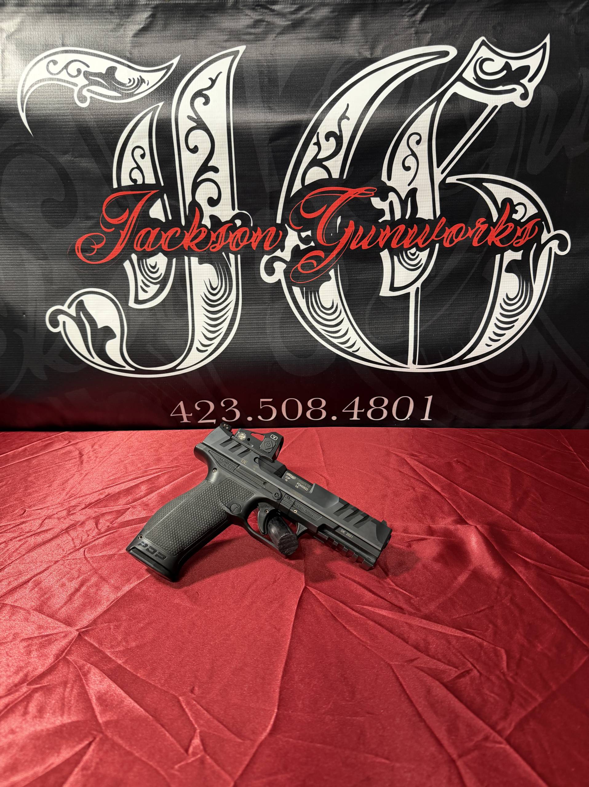 - This pistol features a red dot sight.